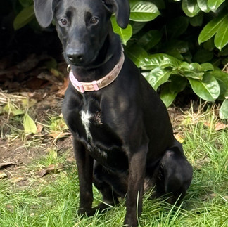 13 months old, registered as a Labrador x Spaniel mix, spayed, microchipped and up to date with flea and worming treatments.